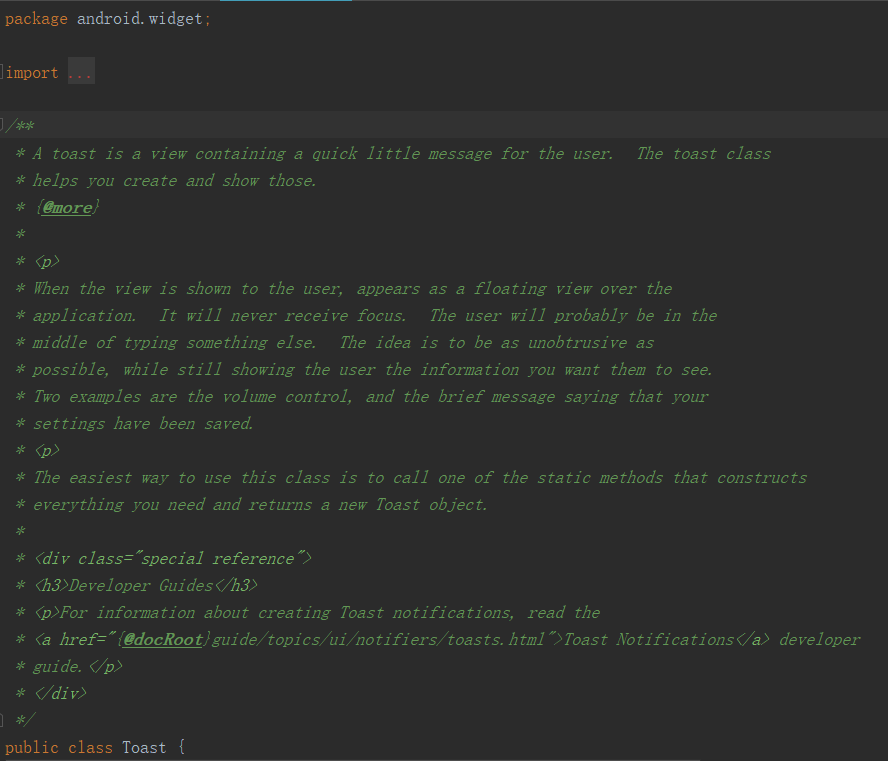 但是通过测试,短吐司显示的时长为2-3秒,而长吐司显示的时长是3-4秒,所以这两个值并不是吐司显示时长的毫秒数,那么我们该如何得出正确的毫秒数呢?这个问题就留给大家去思考,这里不做解答