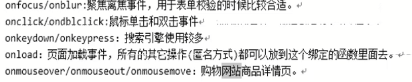 2.确定时间:(页面加载onload、onmouseover、onmouseout/onfoucus、onblur) onload、onclick、onsubmint、一般在<body onload、onsubmit>