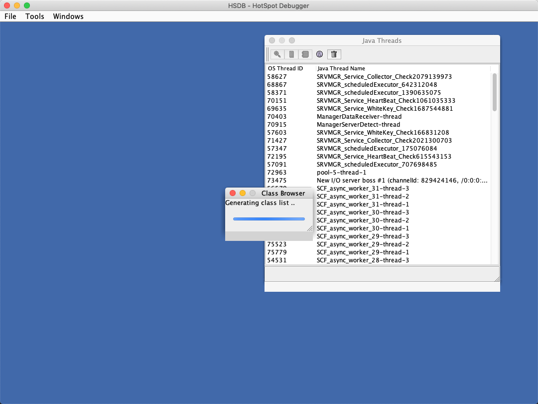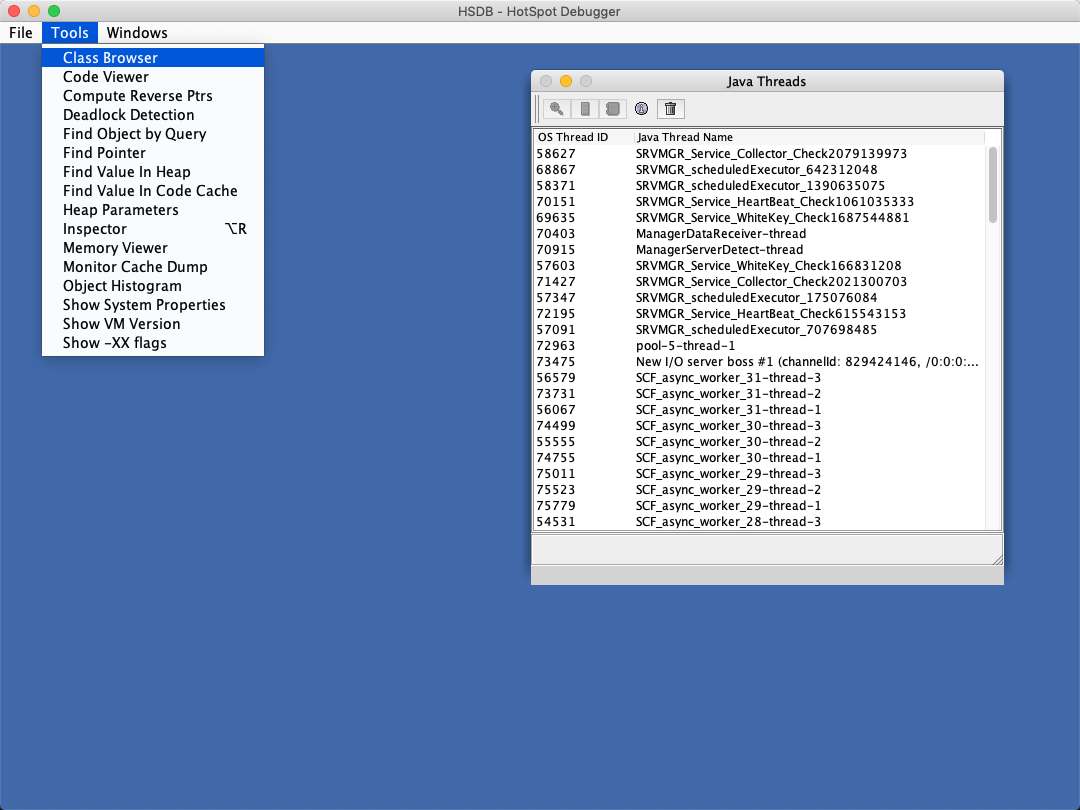 sudo java -classpath "$JAVA_HOME/lib/sa-jdi.jar" sun.jvm.hotspot.HSDB启动HSDB -