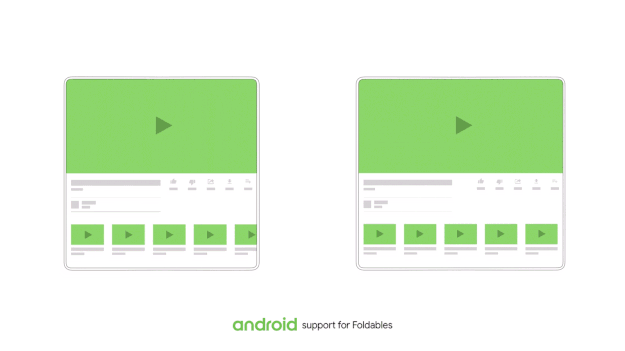 一般来说,此种设备有两种类型:双屏设备和单屏设备。折叠时,Foldables 看上去就像是手机,可装入您的口袋或钱包。展开时,其关键特征便是所谓的屏幕连贯性。例如,在折叠的小屏幕上开启一段视频,接着您可以坐下并展开此设备,在一块像平板电脑这么大尺寸的屏幕上畅享美妙的沉浸式体验。展开设备时,应用会顺场地变换到更大的屏幕上,而不会有任何卡顿。为适配这款新机型,我们正在对 Android 进行优化。同时,我们也正在做出一些改变,帮助世界各地的开发者利用这款设备带来的可能性打造令人惊叹的全新体验,以全新方式吸引用户并给他们带来乐趣。如需了解详情,请收看本周开发者峰会的 Foldables 会议。预计将有数家 Android 手机制造商会推出 Foldables,其中包括 Samsung 也刚刚亮相并计划于明年推出的一款新品。