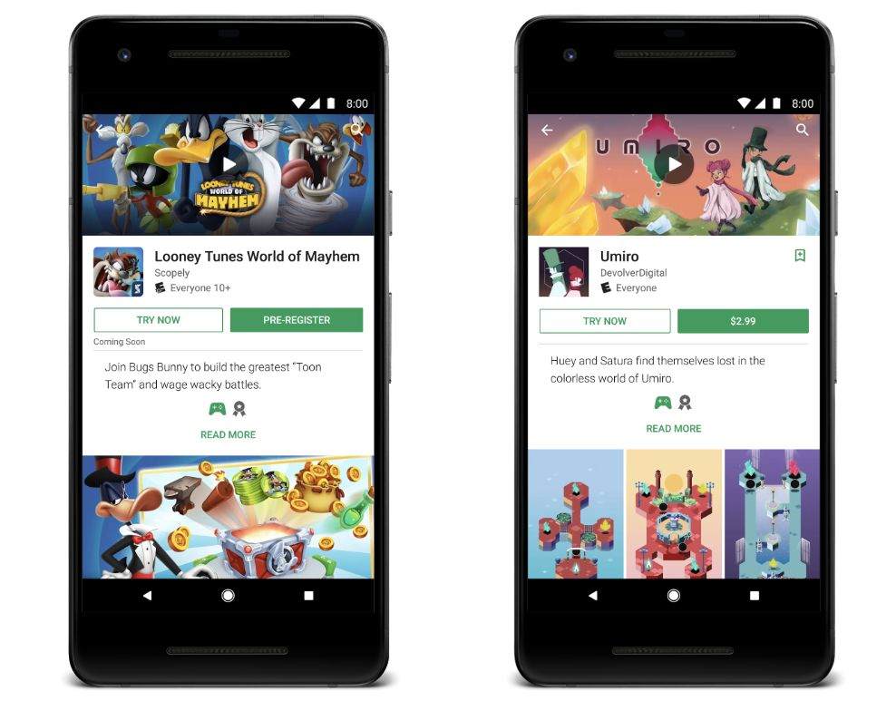 另外,我们也使免安装应用 (Google Play Instant) 更易为用户所采用。近期,我们可让您选择使用网址,让您能利用应用商店中现有的深层链接数据流量,并且如果可以的话,让用户可以即时体验您的应用。此外,我们还将免安装应用大小限制为 10MB,以便在应用商店和网页横额上使用“即时试用”按钮,从而使其可更易为用户所采用。