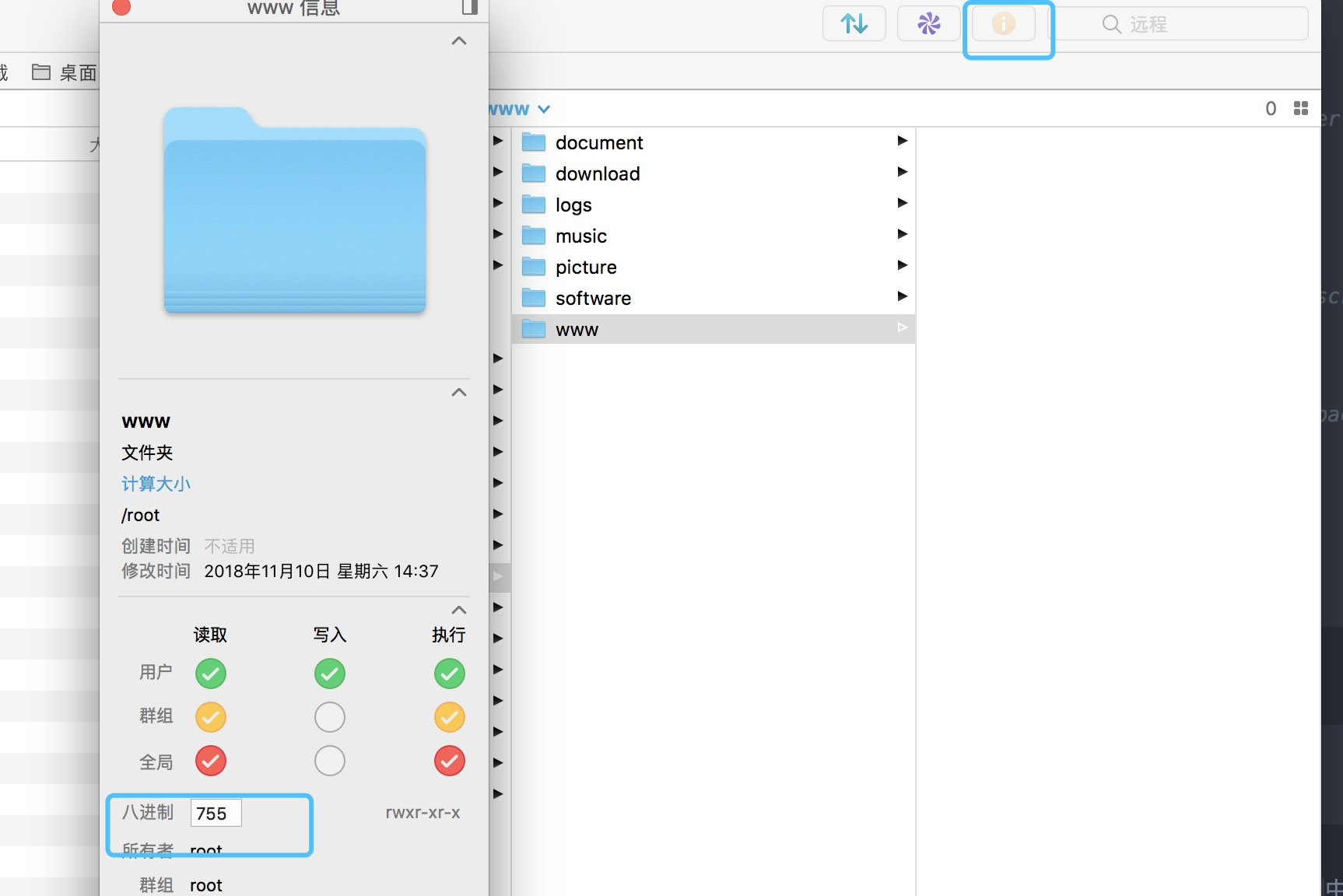 chmod -R 777 /root/www
