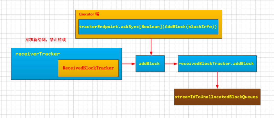 我们可以看到receivedBlockTracker包含在ReceiverTracker,最重要的是receivedBlockTracker内部维护了一个 streamIdToUnallocatedBlockQueues,用于追踪Executor上报上来的Block。