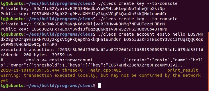部署合同时,会将其部署到帐户,我们这里创建一个名为hello的账号。账号创建流程不解释,不明白的童鞋,回头复习一下之前的教程。 EOS开发完全解析(三):EOS账号创建