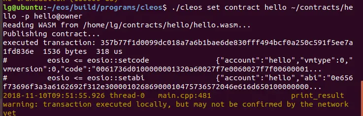 ./cleos set contract hello ~/contracts/hello -p hello@owner