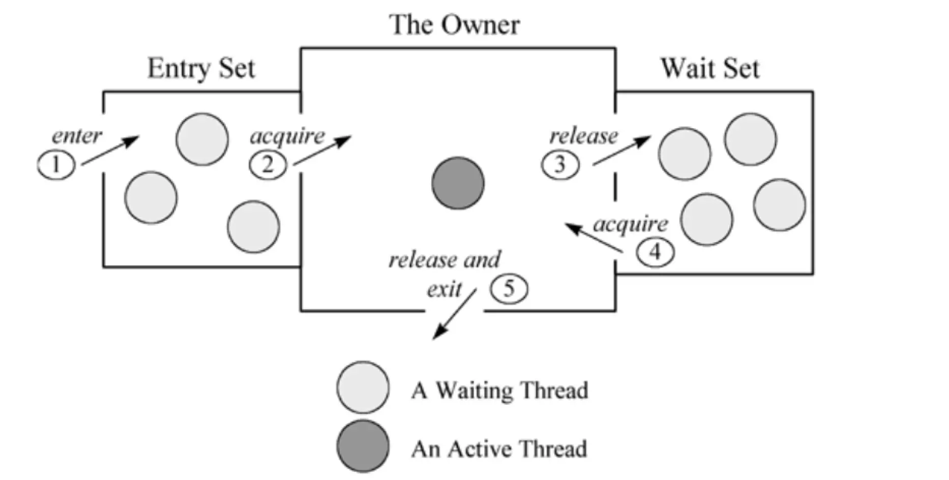 Monitor特意把等待的线程分成了两个部分,Entry Set和Wait Set,Entry Set表示线程刚执行到 Monitor region,而Wait Set则是由于线程执行了wait方法而进入的区域。注意到Object的 notify 以及 notifyAll 要唤醒的对象就处于 Wait Set,换句话说,如果退出 monitor 的线程没有执行 notify/notifyAll ,那么只有 Entry Set 能够获取执行的权限 。如果执行了,则Entry Set和Wait Set中所有的线程都会竞争谁最终能够获取 monitor 的能力
