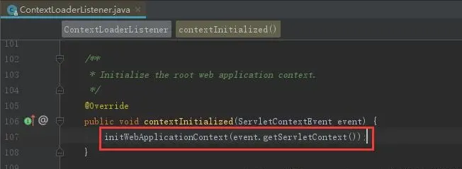 所以在Servlet容器初始化的时候会调用contextInitialized方法。