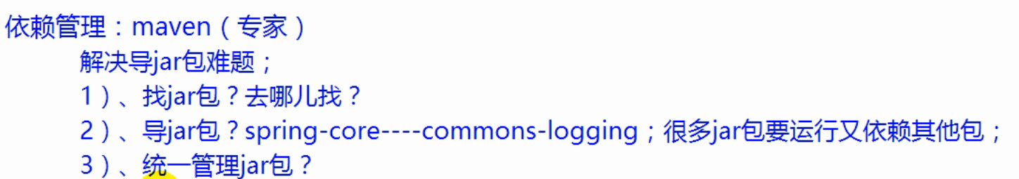 Maven xz甲壳虫 2018-11-11 228 阅读1分钟 maven主要服务于java平台的项目构建、依赖管理、项目信息管理 项目构建: a打包发布: 1.普通的工具类;打包成jar eclipse右键就可以完成 2.web工程:打包成war;eclipse右键就可以完成 目前有了eclipse工具,这个功能在maven中就用的少了 b.依赖管理(核心,其他两个功能少用) 解决导jar包难题 eclipse整合maven 百度maven 仓库可以找到需要的包的坐标
