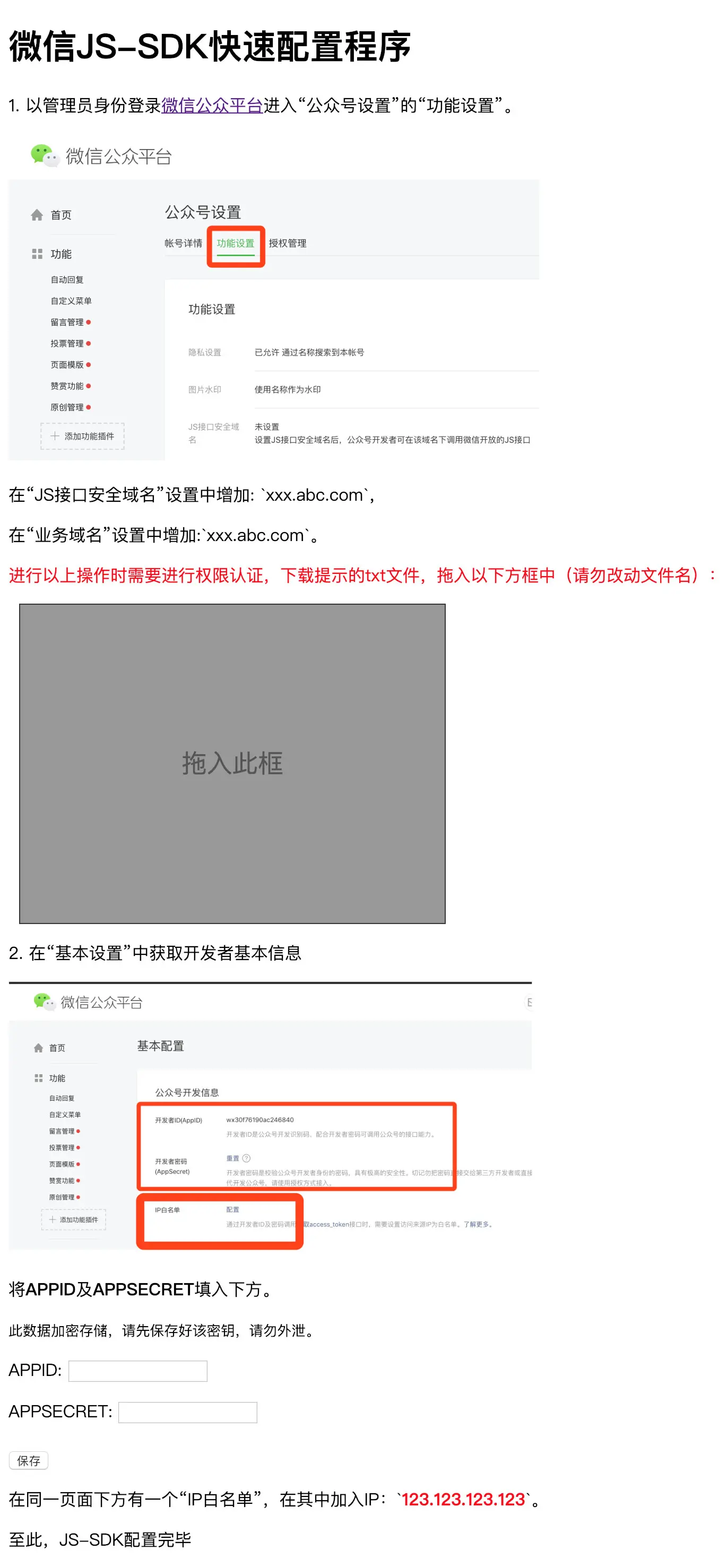 以上三种情况都不是简单的将域名填入到微信管理后台,而是需要下载一个txt文件,保存到服务器根目录,能够被微信服务器直接访问,才能正常保存域名。