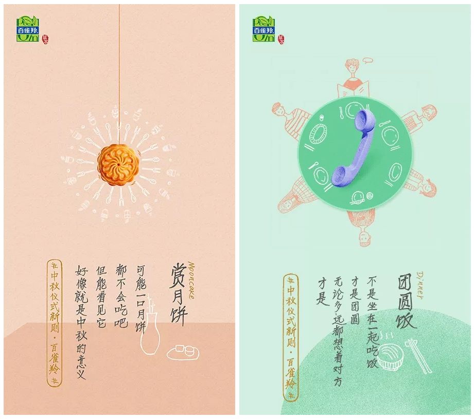 百雀羚卖的是护肤品,面对的主要是女性人群,而女性中对这种马卡龙色调没有抵抗力的比比皆是哈~ 面向女性、婴幼儿的产品适合用这种色调。然后视觉风格中需要展现出温柔可人时也适用于这种色调。