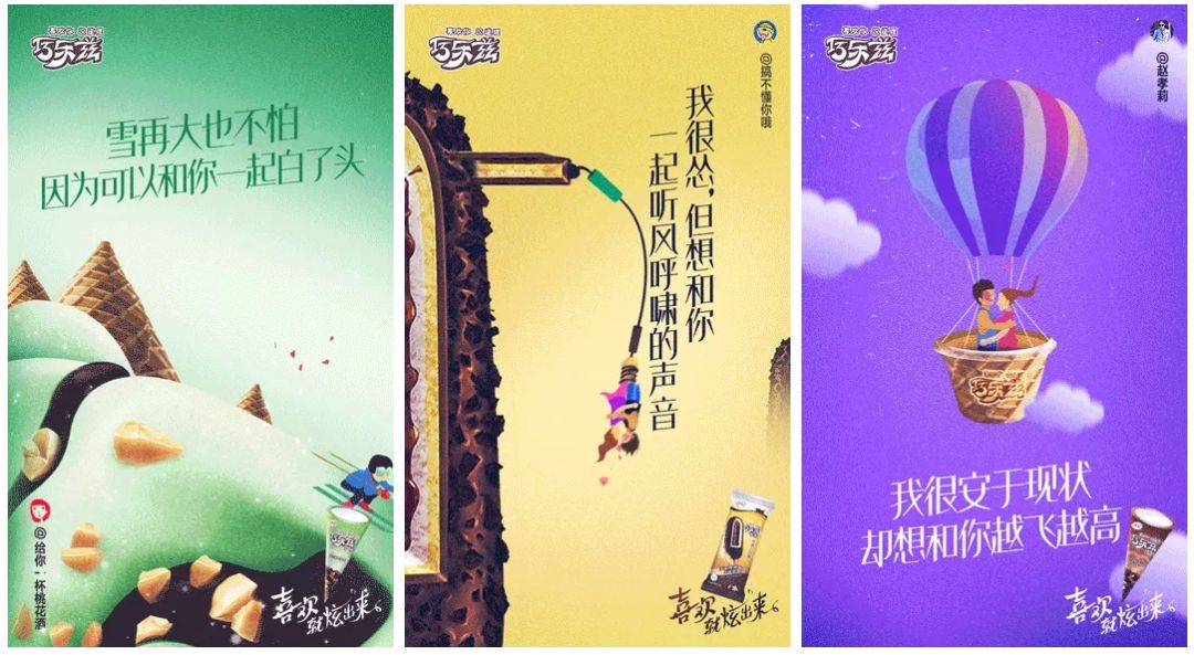 这组海报整体是明色调+柔色调,明媚温柔,符合恋爱甜蜜的主题