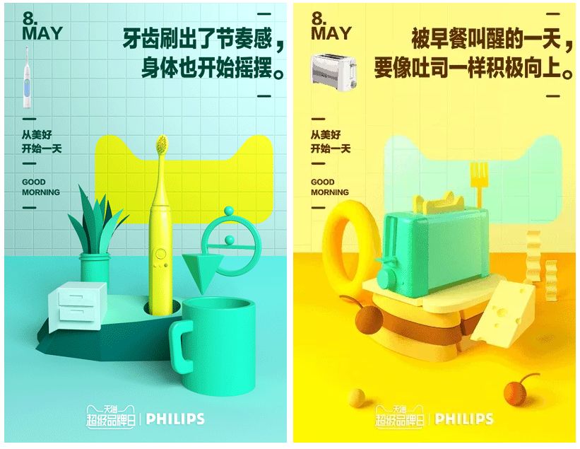 海报主题是“从美好开始一天”,明色调积极明快的基调很贴合。