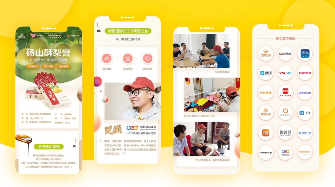 同时,团队成员还结合自身业务,以设计驱动解决问题,以“兴农扶贫”为战略方向,打造具有当地特色的“一县一品”品牌。这一次砀山品牌的打造,就是阿里巴巴国际用户体验设计师迈出的第一步。未来团队还将联动阿里内部多个部门协作,以平台模式创造普惠生态承担并持续拓展企业社会责任。