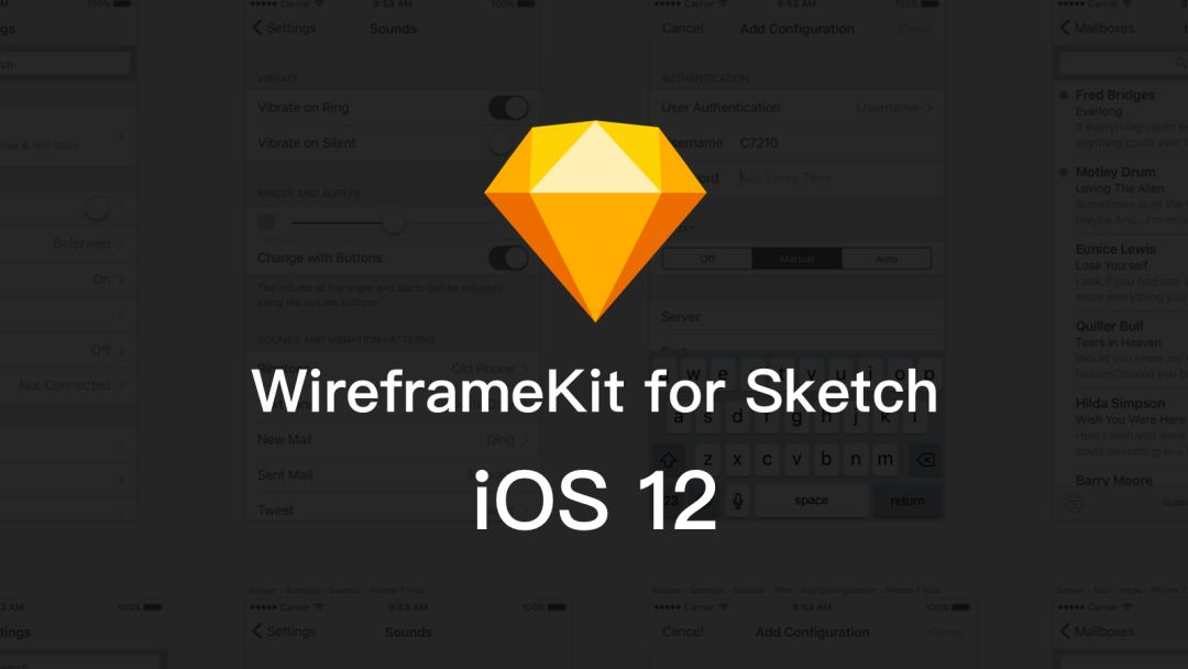 C自制的 WireframeKit for Sketch 线框稿风格组件库已更新至 iOS 12,了解下:
