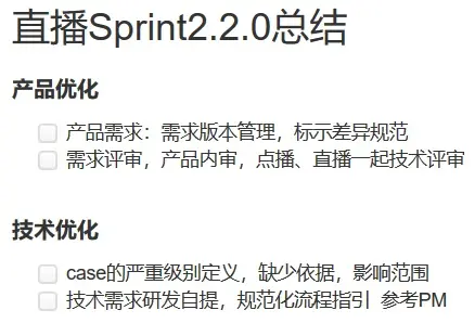 - 团队全员参与,总结当前版本迭代遇到的问题,形成有效措施落地执行,避免重现
