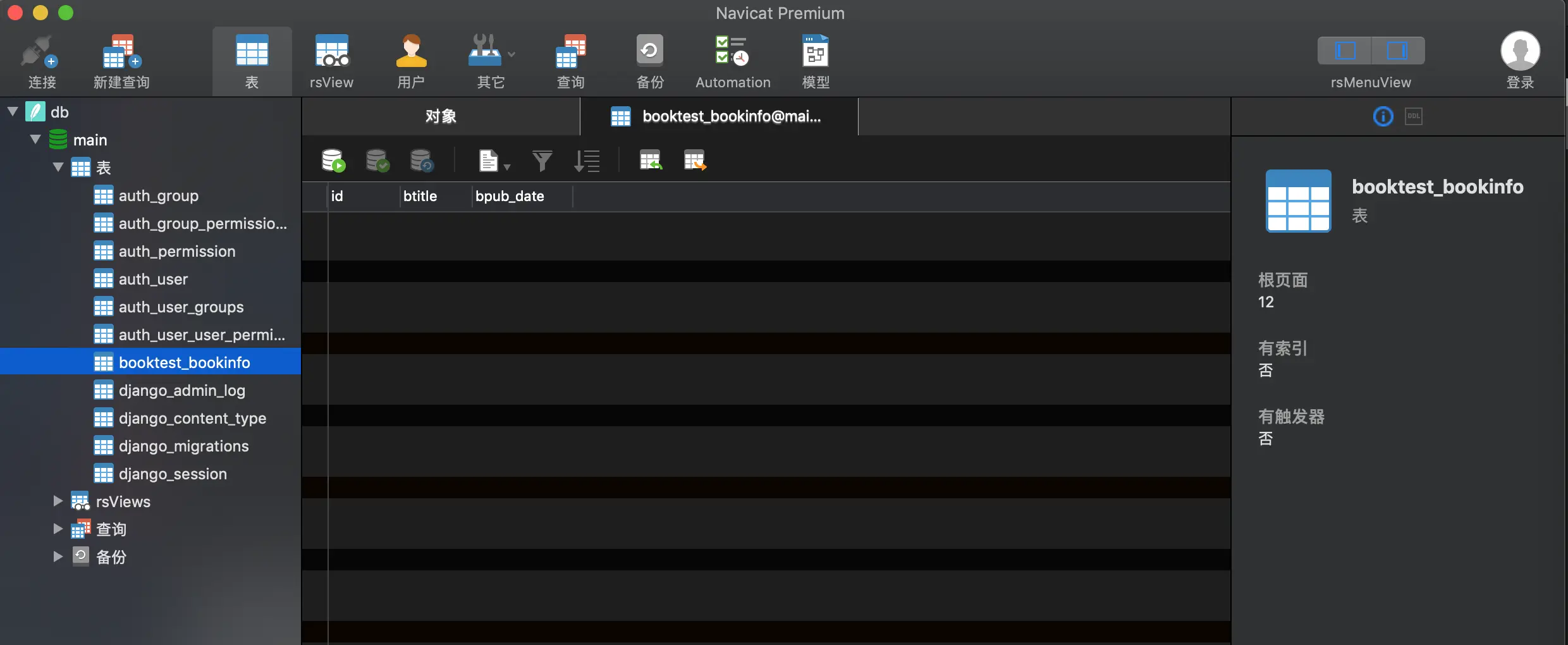 # 向booktest_bookinfo表中插入一条数据。