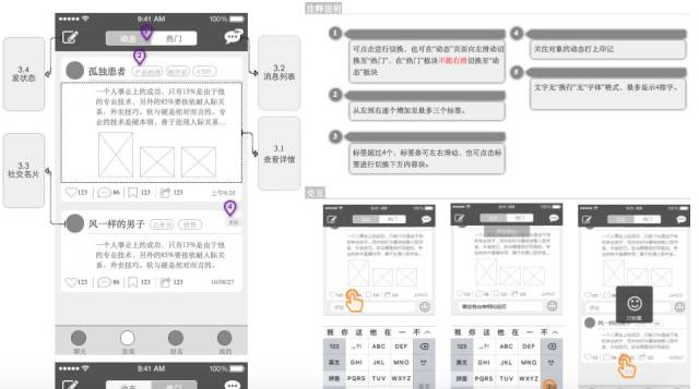 通过使用以上体系,整个原型的标注与说明效果如下,附带交互和注释说明。