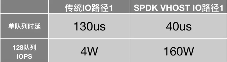 研发环境中,我们将Client收到IO请求后立即模拟返回给VM,也就是不向存储后端发送数据,得到的数据如上图。单队列时延可以降低90us,IOPS有几十倍的提升。