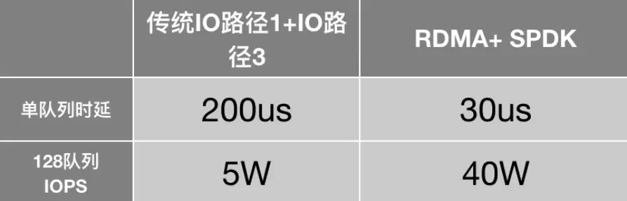 目前团队正在研发利用RDMA和SPDK的存储引擎框架,研发测试环境中,后端用一块NVME固态盘,我们在单队列和IOPS上可以提升如下: