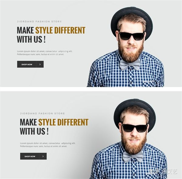 营造不同的视觉次序最重要的就是在正常人习惯的固有次序上寻找变化,那么我们同样可以以形态上的变化作为差异化的形式,比如: