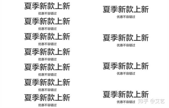 当要求不能改变很多时,在原有的基础上只需要改变空间位置或者留白方式,也可以营造不同的视觉次序,比如: