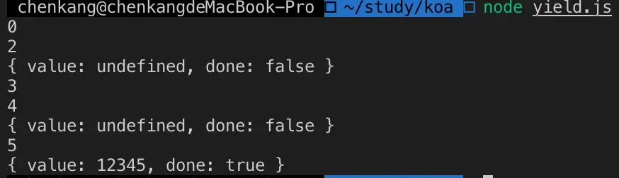 *2. 么一个yield 前面定义的值就是下一个 next() 执行的参数