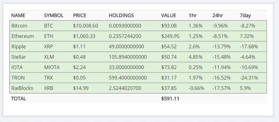 使用免费的Coinmarketcap API非常容易。当你为它添加一些样式时,你可以制作你的投资组合小部件,方式没有限制,你也可以添加多少额外的数学和计算。