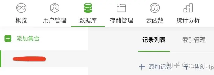 - 数据库:云端JSON数据库,小程序前端和云函数都可以进行操作。