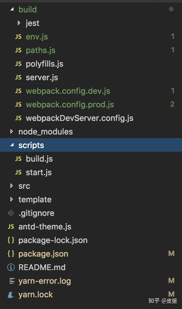 当然webpack升级准备,调整create-react-app的目录结构已符合我们项目开发的规范是必不可少的。这里重点需关注的为build目录下的一下文件: