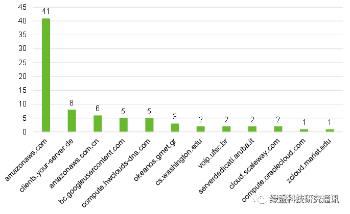 前述暴露的337个Docker服务IP,我们对其域名服务分布情况进行了统计,其中不乏某些知名公有云厂商的IP地址。