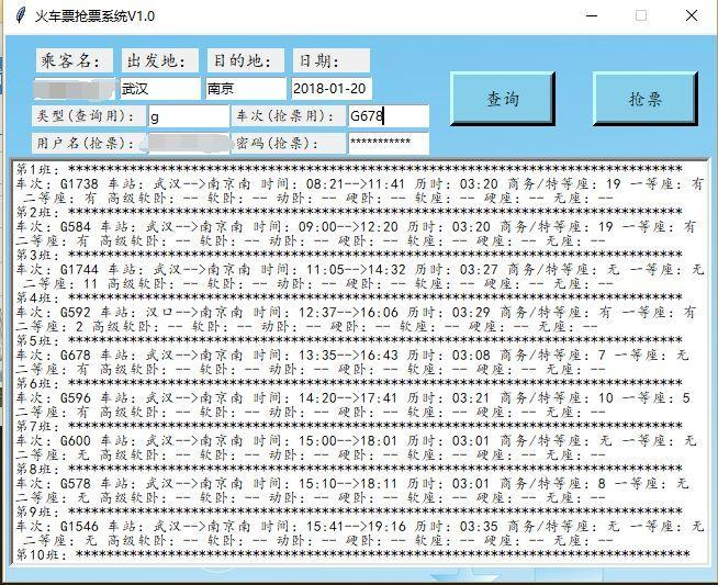 输入正确的用户名、密码和出发地与目的地即可。