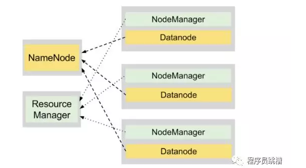 DataNode和NodeManager进程在同一节点上并置以启用数据位置。这种设计使得能够在存储数据的机器上执行计算,从而最小化通过网络发送大块数据的必要性,这导致更快的执行时间。