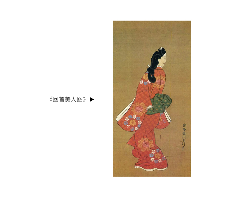 菱川师宣流传于世最具代表性的作品就是以下这幅《回首美人图》: