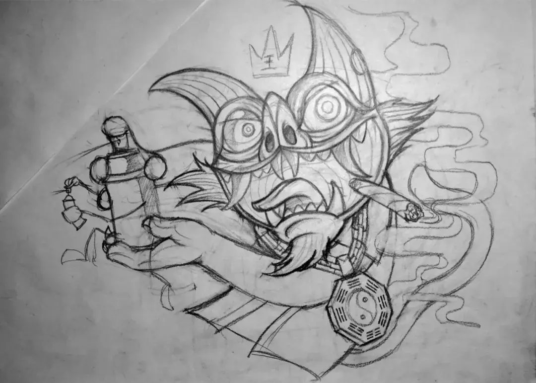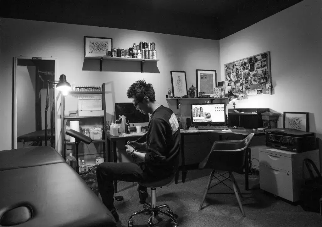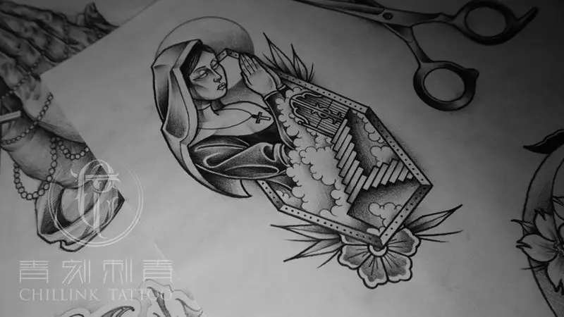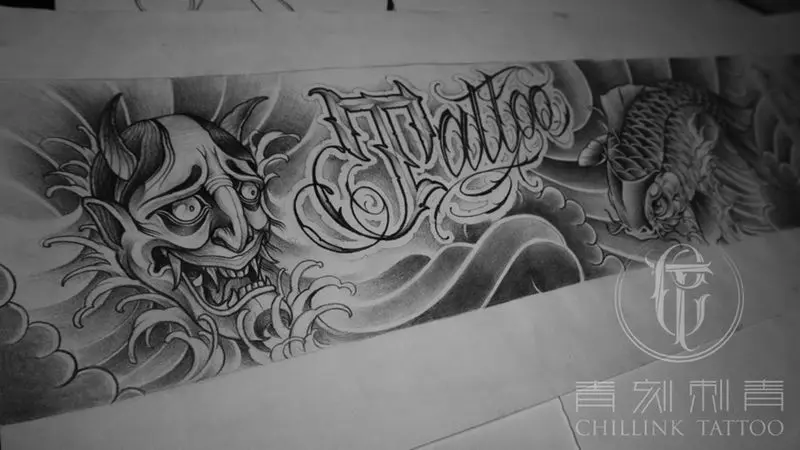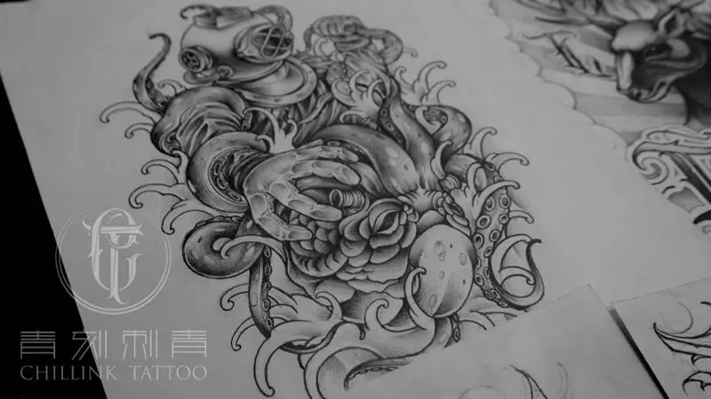 Eikos:同样都需要考虑画面的美感、构图、不同的是纹身还需要考虑纹身的位置构图和图案纹上身后的效果、因为往往在纸上看到的手稿和纹上身后的效果,有所不同。