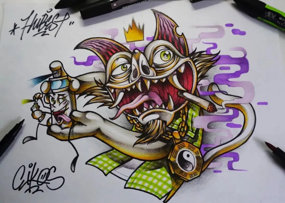 纹身的人物或动物,这在纹身里是个热门题材,创作的风格也各种各样,这一点和涂鸦很类似,我觉得没有太大区别,有些纹身图,通过涂鸦的方式画在墙上也一样很好看。