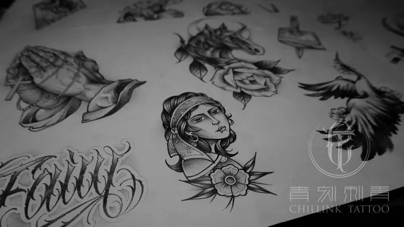 纹身的角度来讲,大部分都是以纹图形为主,字体很少是主要部分,都是配合画面需要做的一些点缀 也有专做字体类的纹身;比较常见的就是,奇卡诺花体字和中文书法字体。 在这主要说花体字,同样也要讲究字体间的连接和节奏,这点和写涂鸦字体类似,很多人把它当图案来画,但它其实就是写字,要找到书写的感觉,写字的连贯性。