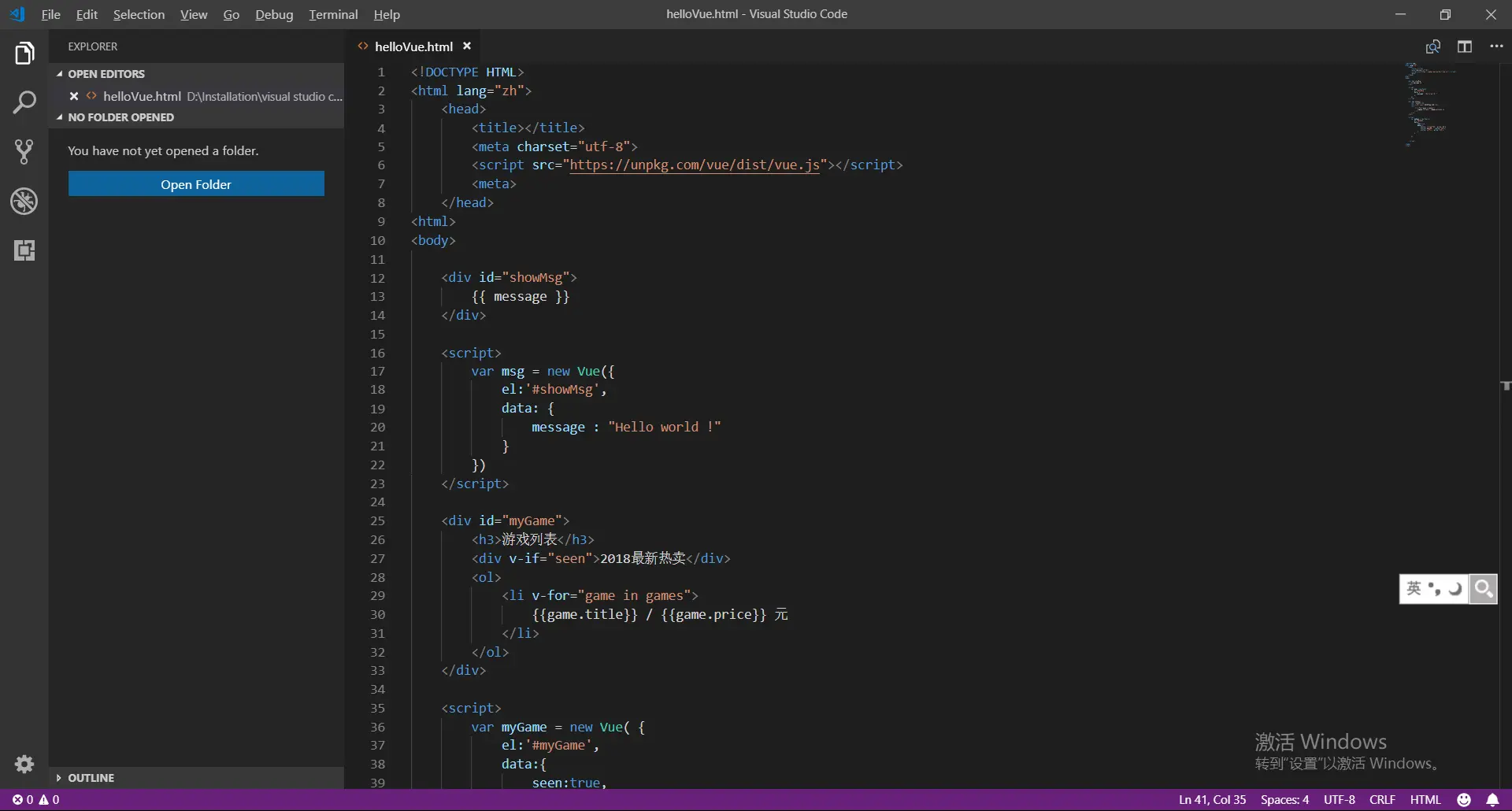 - 用微软的visual studio code作为编辑工具。下载地址:pc.qq.com/detail/16/d… 创建一个文本,保存到本地时选择html5。