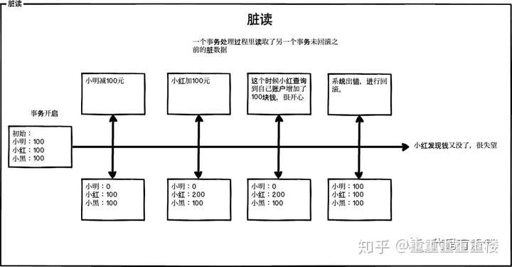 让我们举一个转账的例子来说明这四个特性;小明账户里有100元,小红账户里有100元,这个时候小明往小红账户里转100元。这个时候包含两个操作: