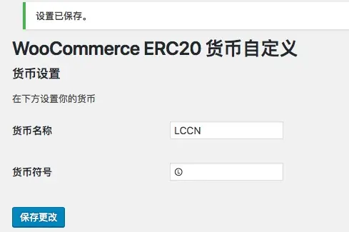 启用插件后,点击左侧菜单中的「settings」——「WooCommerce ERC20 货币自定义」,进入到插件的设置界面。