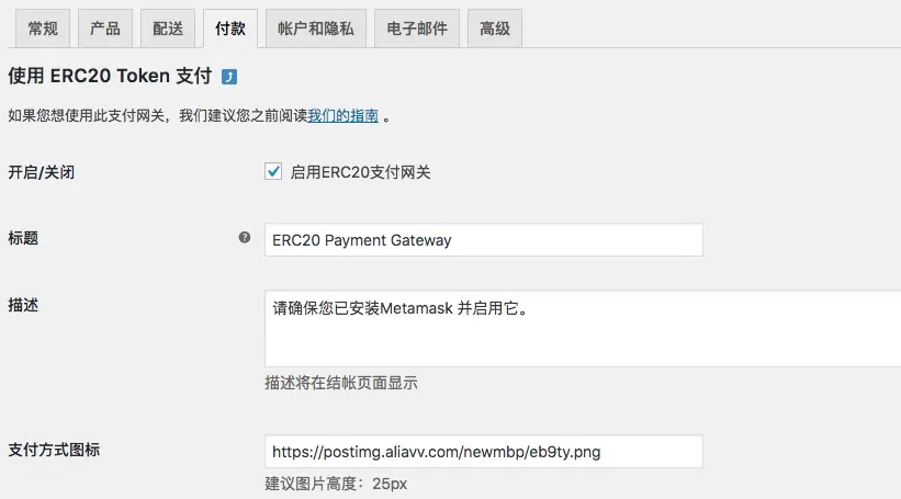 - Woocommerce ERC20 Payment Gateway 插件 官方市场地址:wordpress.org/plugins/woo…