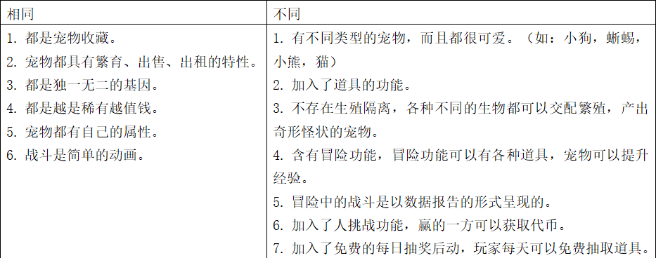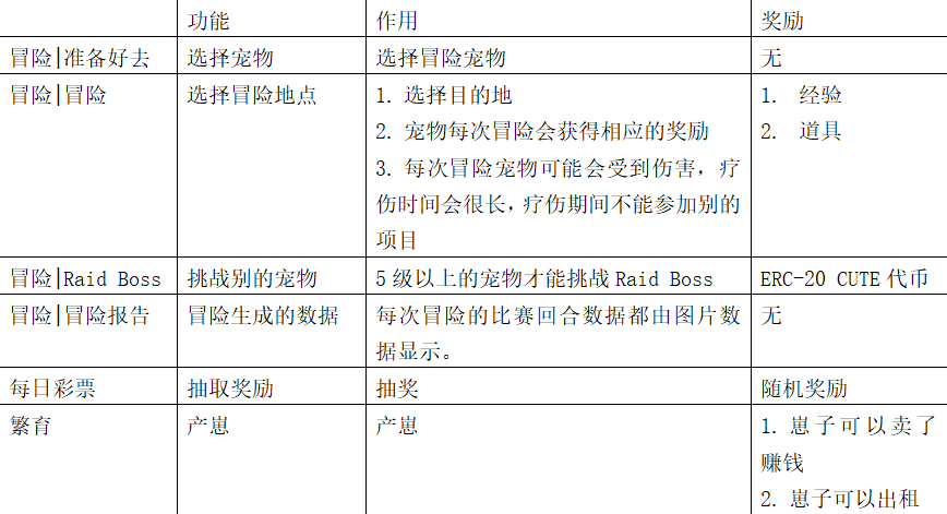 通过上面的分析, Blockchain Cuties (区块链萌宠)在游戏中加入了一些其他收藏类游戏所不具备的功能,使得游戏本身更加的多样性,从而更能吸引用户。对于游戏本身优劣势我做了一个简单的分析,了解一下。