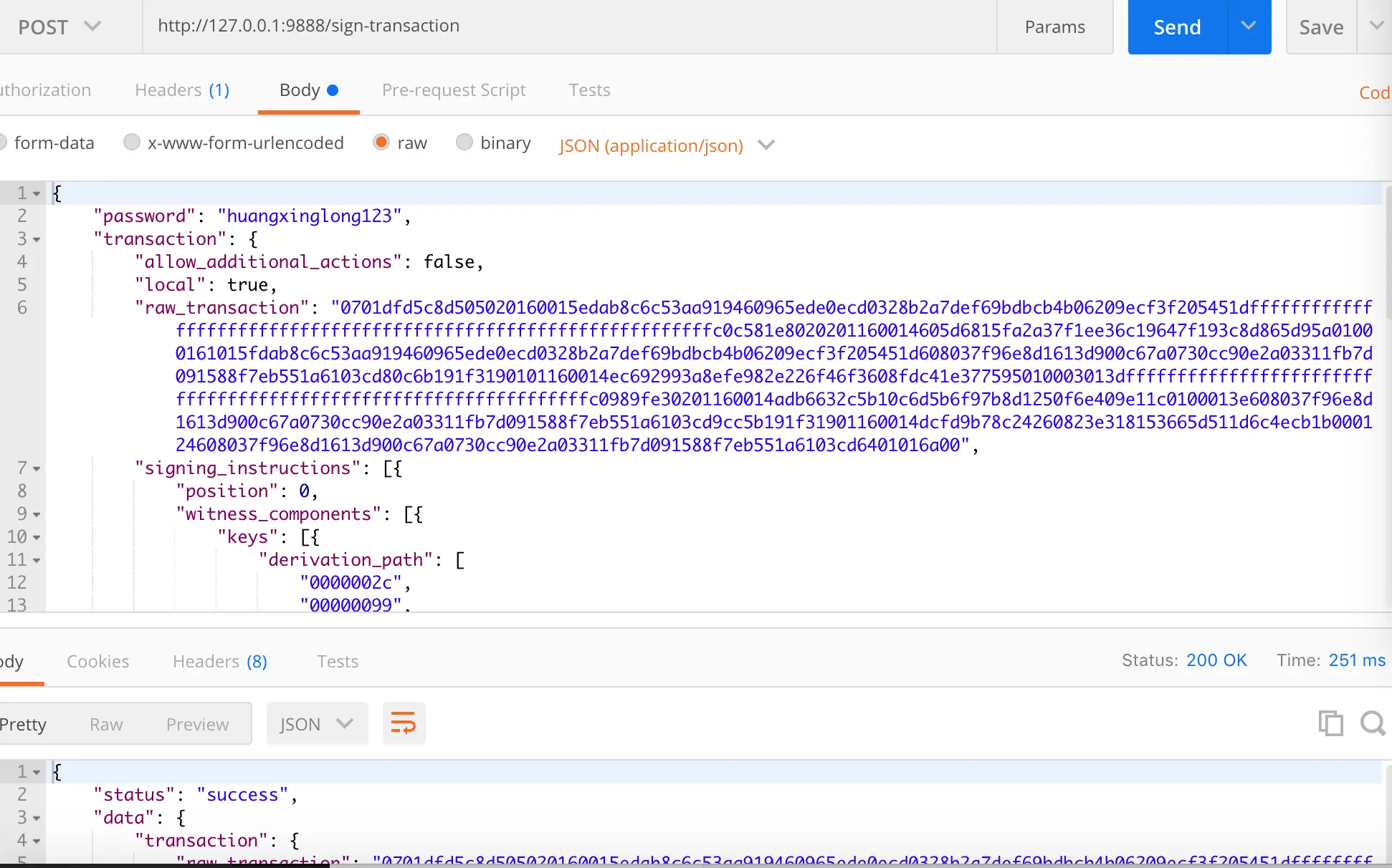 请求sign-transaction接口:
