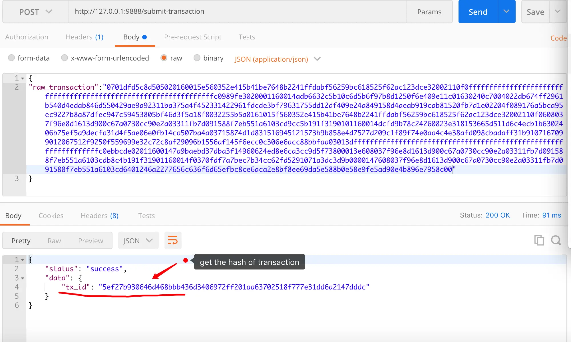 value, err := SendTransactionRetire(transaction_params, port)