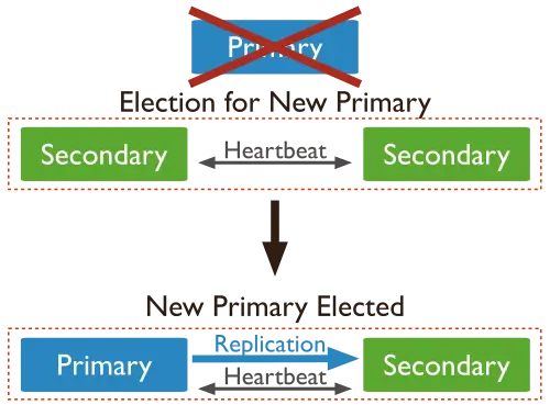 副本集能够自动进行故障切换恢复。如果primary掉线或者无反应且多数的副本集成员能够相互连接,则选出一个新的primary。