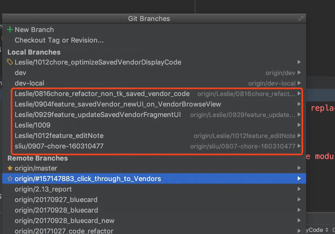 我们把分支的文件批量删除,重启Android Studio,对应的分支便不会出现在Android Studio的分支列表了。