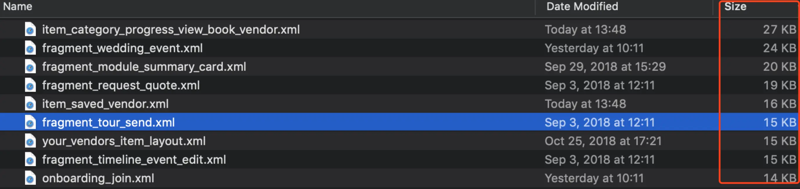 5. 对整个APP的布局进行优化时,可以对layout文件的大小进行降序排列,从占用空间最大的文件开始优化