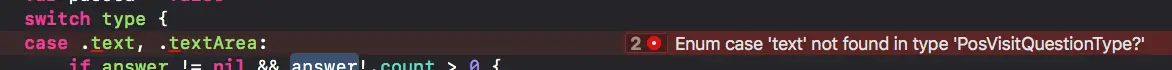 原因可能是 type是可选的,所以每个case情况要与type类型保持一致,所以提示加 “?”,可能是Xcode10编译器更新的原因。