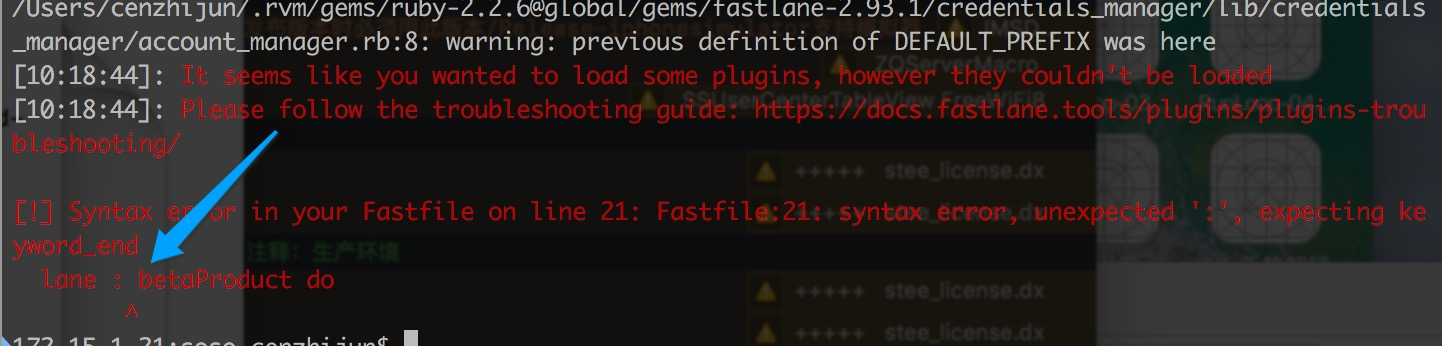 我原先看文档,看到有人将Gemfile和Gemfile.lock文件拖到fastlane文件夹里面了,但是自动生成的话是在这个文件夹外面的,但是我想着放到一个文件夹里面方便管理,就这样报错了,所以记住,它生成在哪你就放在哪就行。