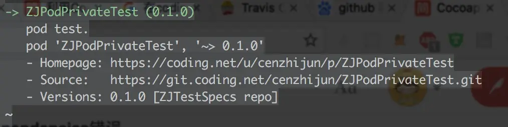 pod repo add ZJTestSpecs https://coding.net/u/cenzhijun/p/ZJTestSpecs/git