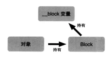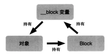 由于self持有了block,所以当前对象self、block已经__block变量三者的关系为: